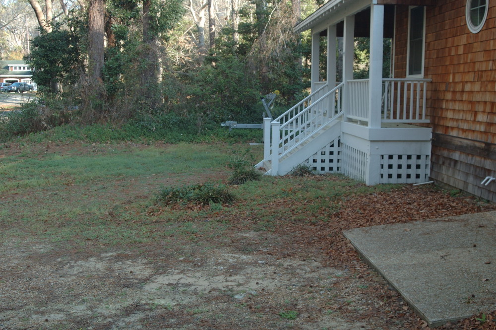 The “before” photo above pictures the remnants of the old landscape with no real walk, drive, or lawn. With construction vehicles finally off the lawn, it is time to reclaim the landscape. This is our starting point.